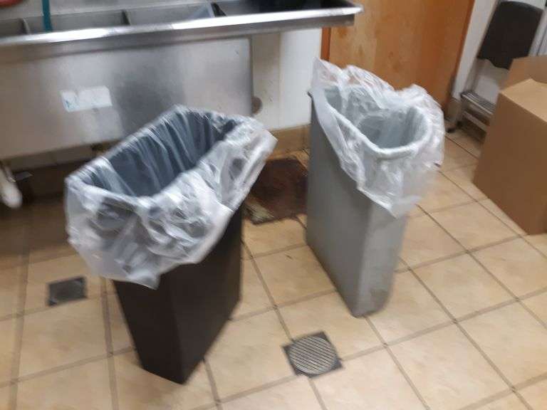 (1) Slim Jim 21 Gallon Trash Can, (1) Half Circle Trash Bin