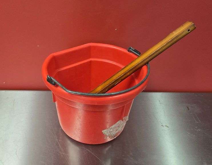 (1) Polycarbonate Cleaning Pail, (1) Wood Handled Scrub Brush