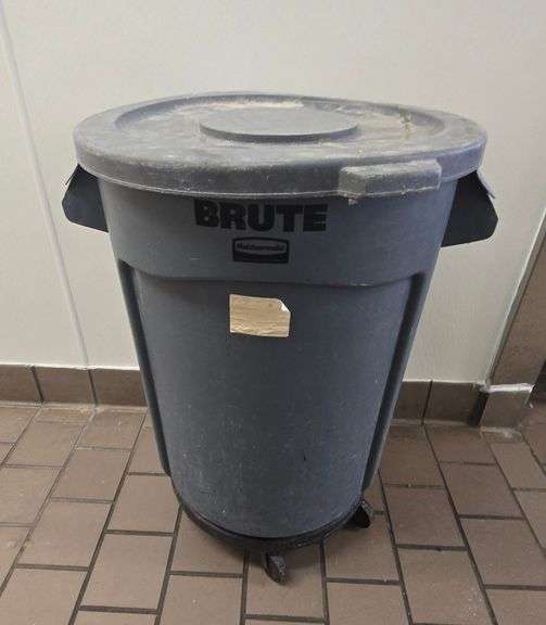 LOT 137 - Rubbermaid Brute 32 Gallon Trash Can with Lid and Cart