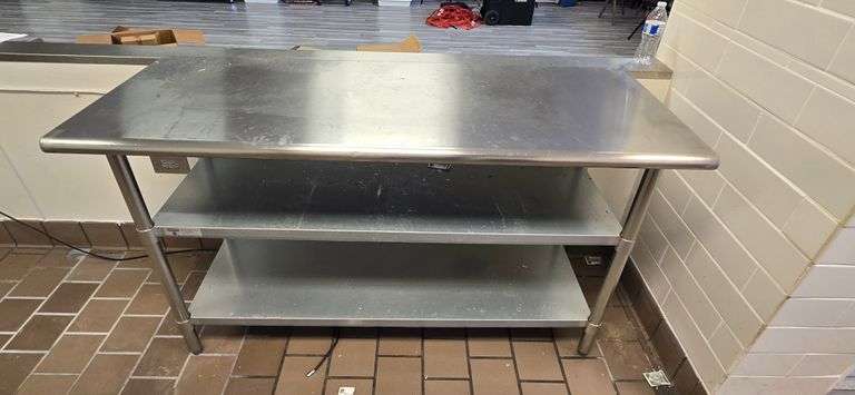 Steelton Stainless Steel Work Table with Stainless Legs and Double Under Shelf - 60" x 24" x 35" - NSF Approved