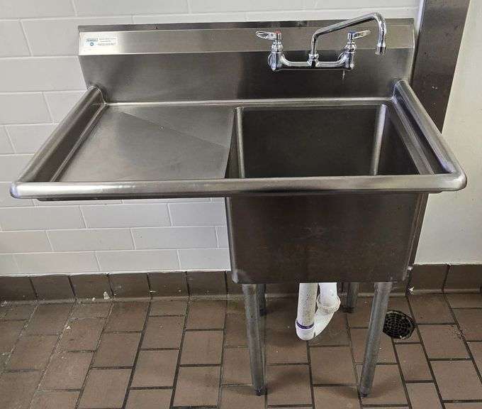 Steelton Stainless Steel Veggie Prep Sink with Drainboard on Right, Faucet, and Drain - Model # 522CS1181818LFT - 38.5" x 23.5" x 44" - NSF Approved