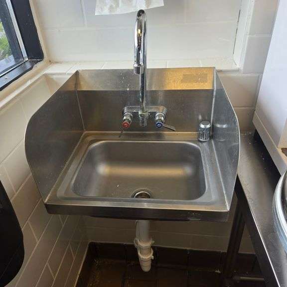 LOT 73 - Stainless Steel Hand Sink with Faucet, Drain, and Splash Guards - 17.25" x 15"
