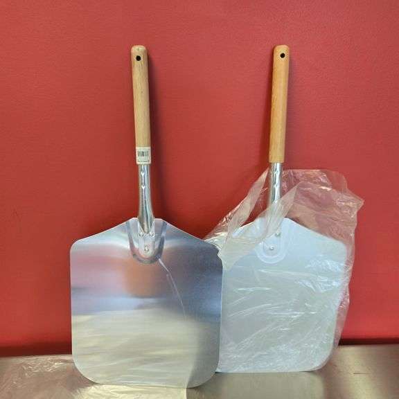 LOT 41 - (2) New Choice 12" x 14" Aluminum Pizza Peels with 12" Wood Handles - Model # 407PPA121426