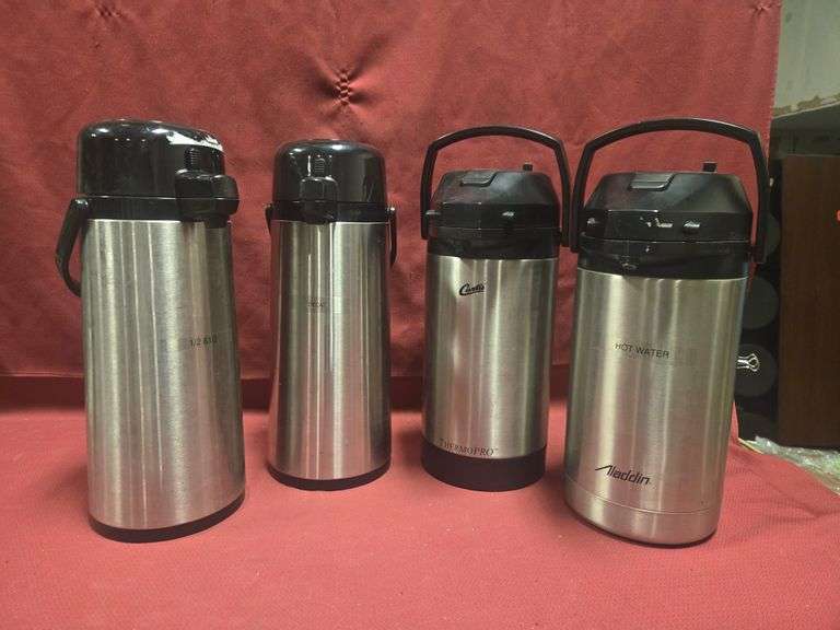 (2) Service Ideas 2.2 Liter Glass Lined Airpots with Lids, (2) Stainless Steel Lined Airpots with Lids