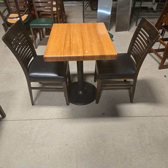 LOT 323 - (4) Dining Room Chairs with Dark Wood Backs and Black Vinyl Seats - (Table Not Included)