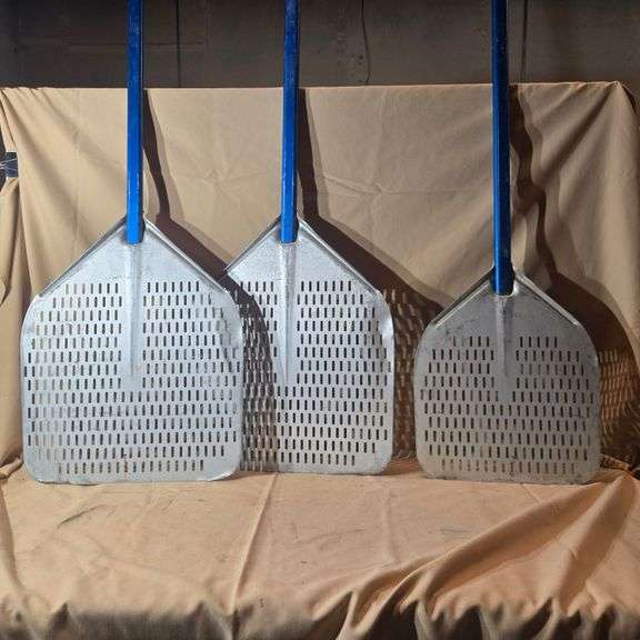 LOT 147 - (3) Assorted Aluminum Pizza Peels with Perforated Blades and Metal Handles