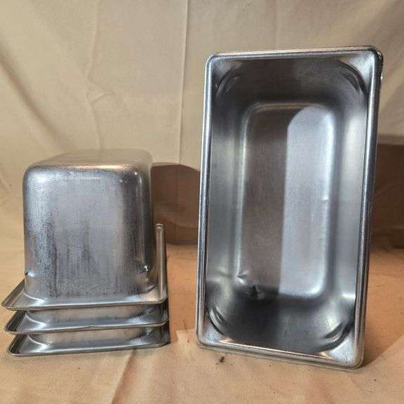 (4) Third Size 6" Deep Stainless Steel Hotel Pans - NSF Approved