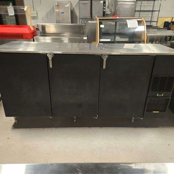 Glas Tender 3 Door Under Counter Cooler with Stainless Steel Work Top - BB84-R6-BS(RRR) - 120 Volts; 1 Phase - 84" x 25" x 43" - NSF Approved